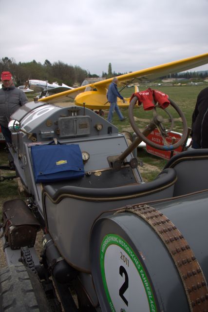 Ainsi nous avons pu admirer des véhicules historiques construits avant les années 1940. (voir site ..)avec une exposition de nos planeurs anciens. La manifestation s'est cloturée par un vol en C800, avec à son bord un participant enthousiaste.